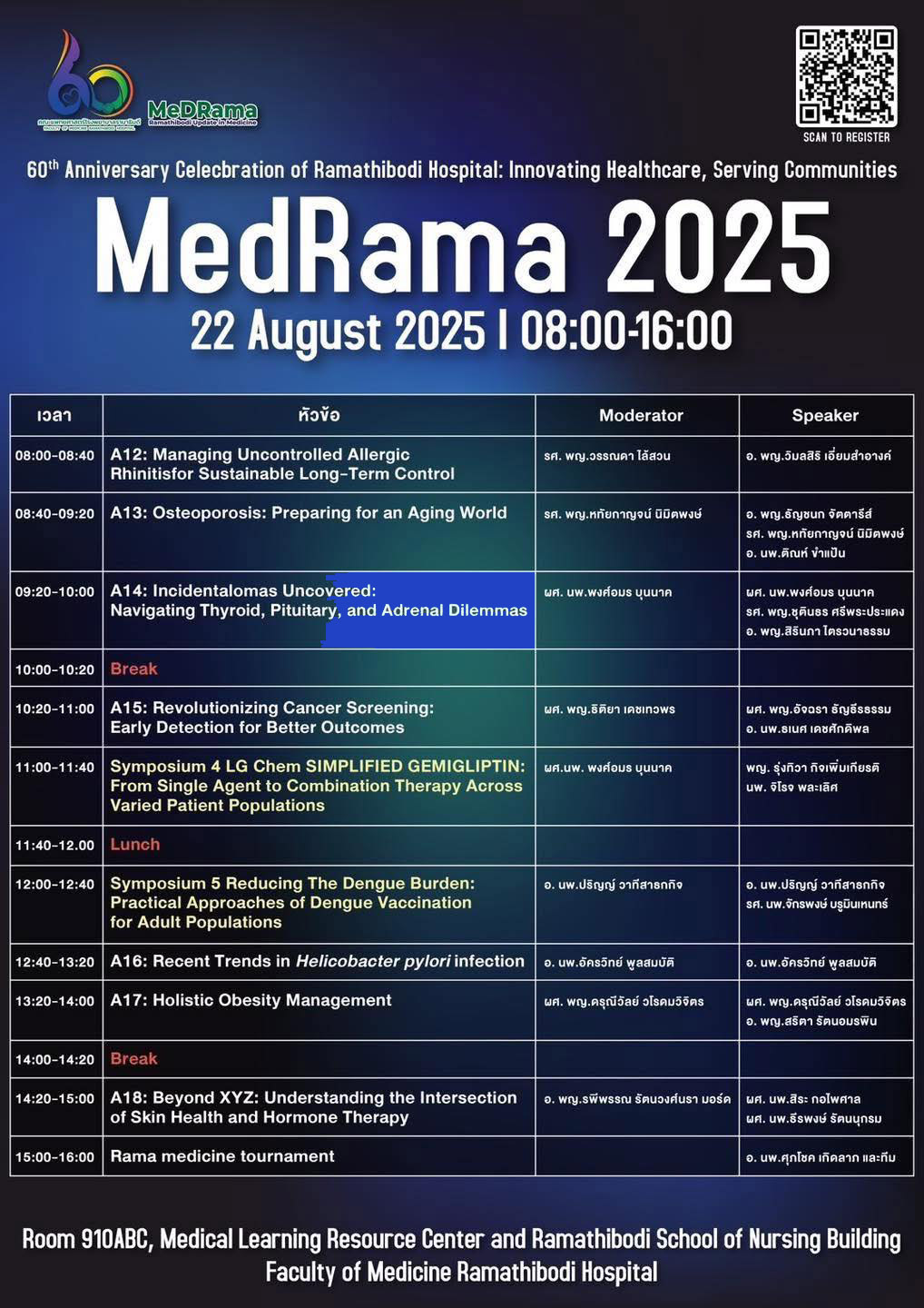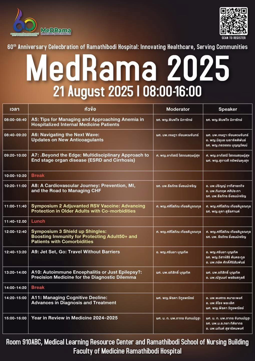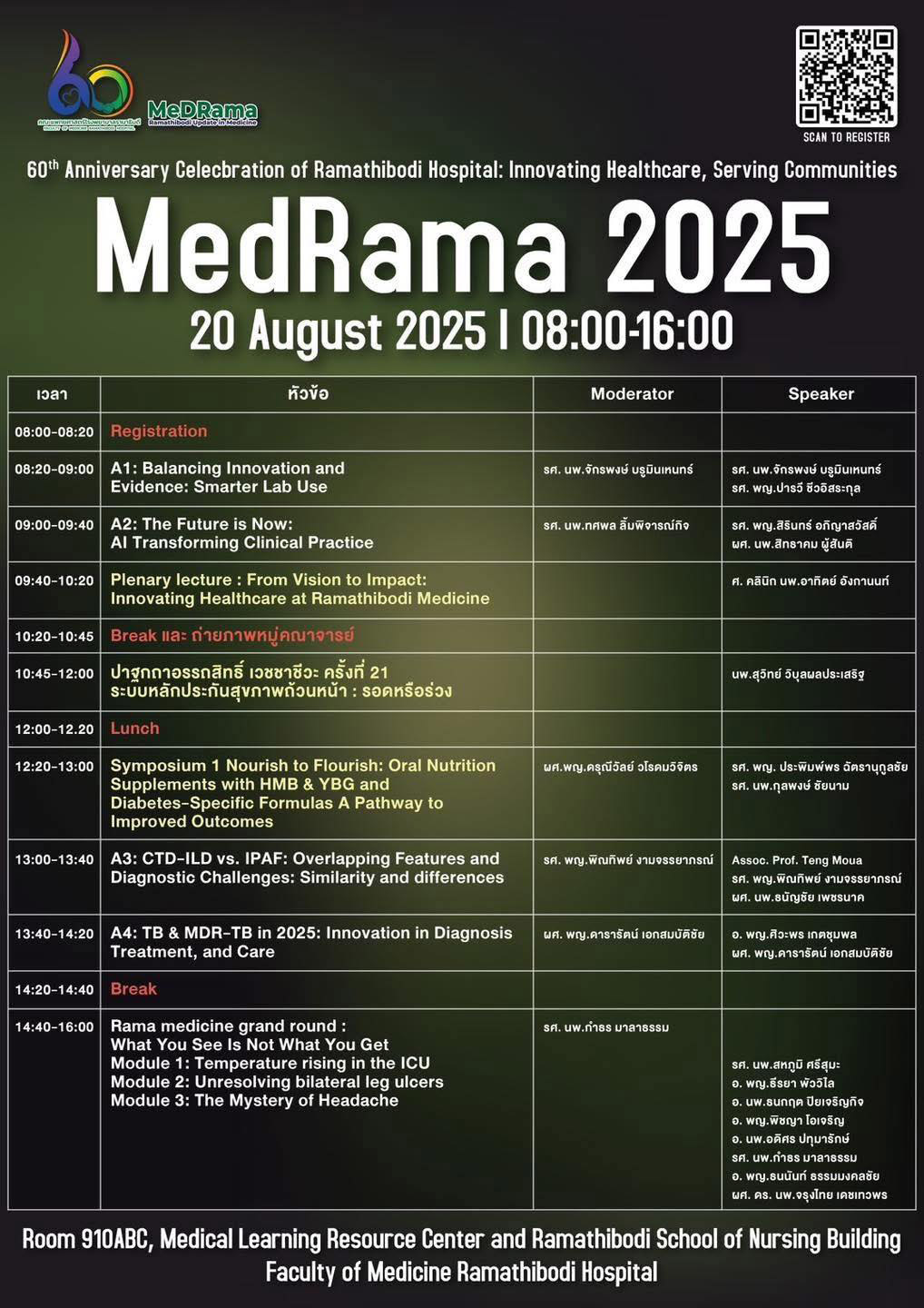 ภาควิชาอายุรศาสตร์ คณะแพทยศาสตร์โรงพยาบาลรามาธิบดี มหาวิทยาลัยมหิดล จัดประชุมวิชาการ Ramathibodi Update in internal Medicine 2025 60th Anniversary Celobration of Ramathibodi Hospital