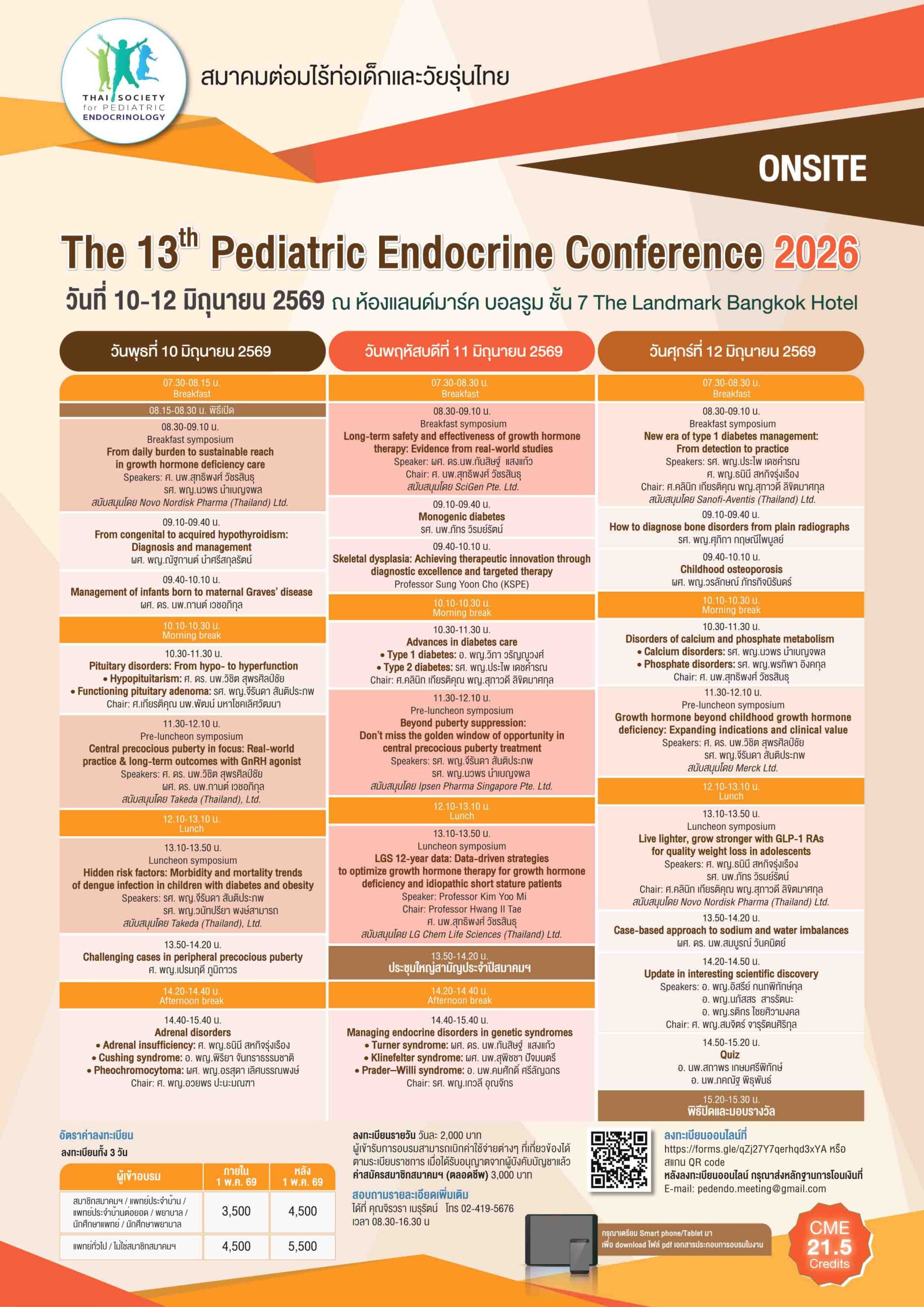 สมาคมต่อมไร้ท่อเด็กและวัยรุ่นไทย จัดการประชุมวิชาการ The 13th Pediatric Endocrine Conference 2026 วันที่ 10-12 มิถุนายน 2569 ณ ห้องแลนด์มาร์ค บอลรูม ชั้น 7 โรงแรมแลนด์มาค์ค กรุงเทพฯ