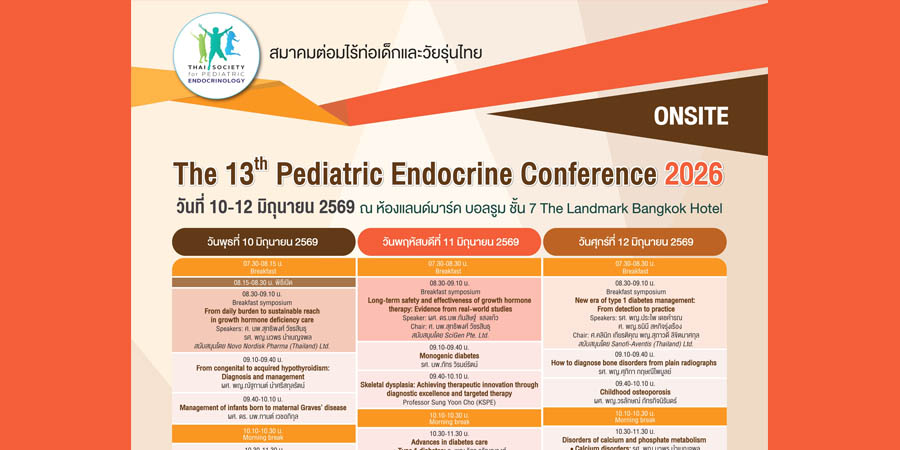 สมาคมต่อมไร้ท่อเด็กและวัยรุ่นไทย จัดการประชุมวิชาการ The 13th Pediatric Endocrine Conference 2026 วันที่ 10-12 มิถุนายน 2569 ณ ห้องแลนด์มาร์ค บอลรูม ชั้น 7 โรงแรมแลนด์มาค์ค กรุงเทพฯ