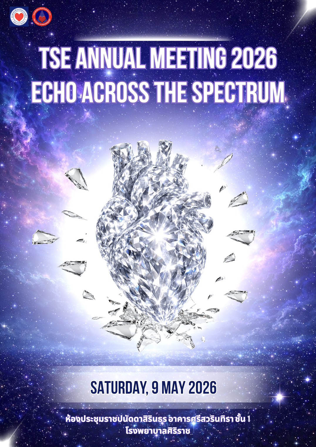 ชมรมคลื่นเสียงสะท้อนหัวใจแห่งประเทศไทย จัดการประชุมวิชาการ Annual Scientific Meeting 2026 “ECHO Across the Spectrum” ในวันเสาร์ที่ 9 พฤษภาคม 2569 ณ ห้องประชุมราชปนัดดาสิรินธร อาคารศรีสวรินทิรา ชั้น 1 คณะแพทยศาสตร์ ศิริราชพยาบาล