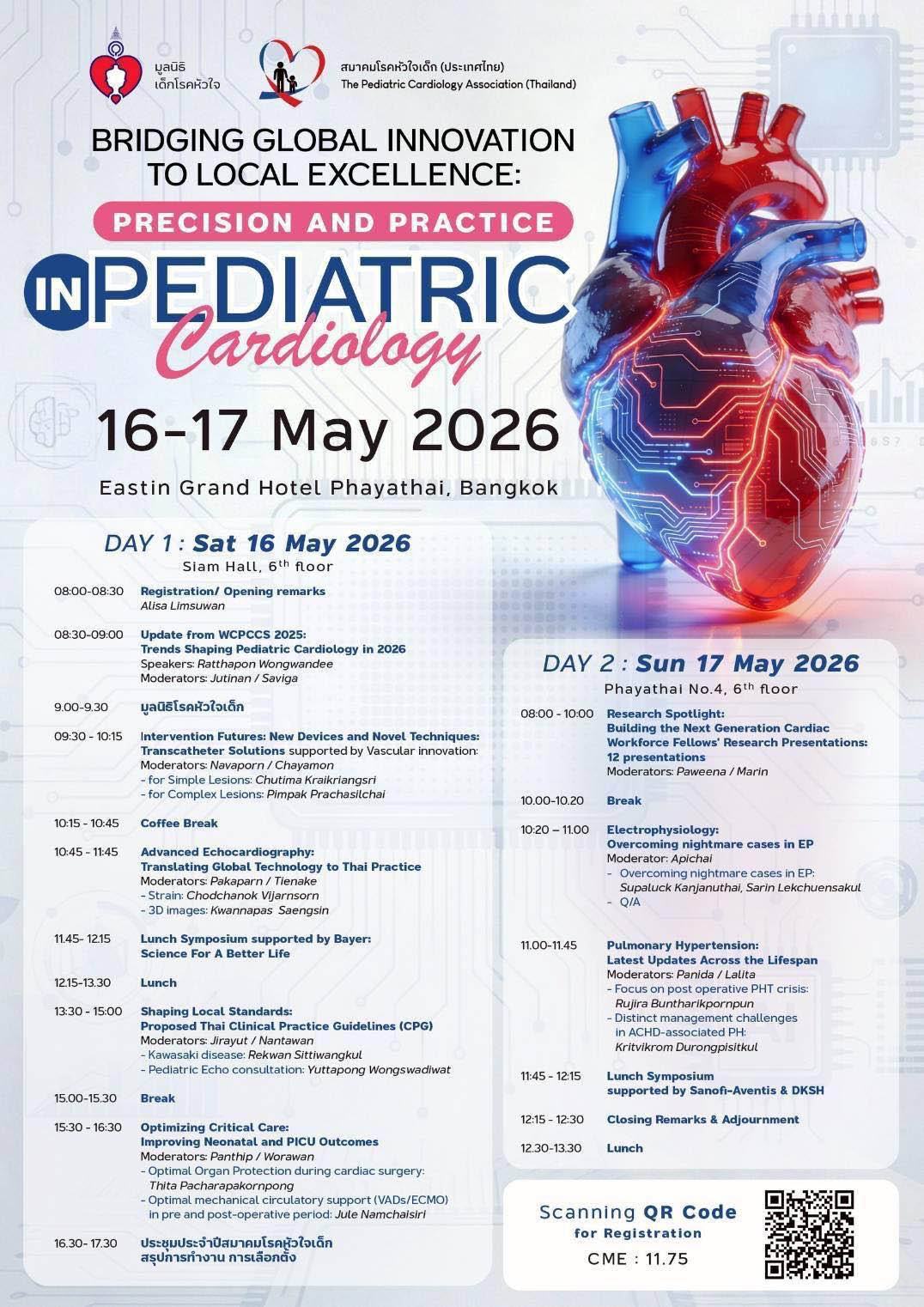 สมาคมโรคหัวใจเด็ก (ประเทศไทย) จัดงานประชุมประชุมสมาคมโรคหัวใจเด็ก (ประเทศไทย) ( Annual meeting PCAT 2026) ในหัวข้อ  “ Bridging Global Innovation to Local Excellence: Precision and Practice in Pediatric Cardiology ” วันที่ 16–17 พฤษภาคม 2569 ณ โรงแรมอีสติน แกรนด์ พญาไท กรุงเทพฯ