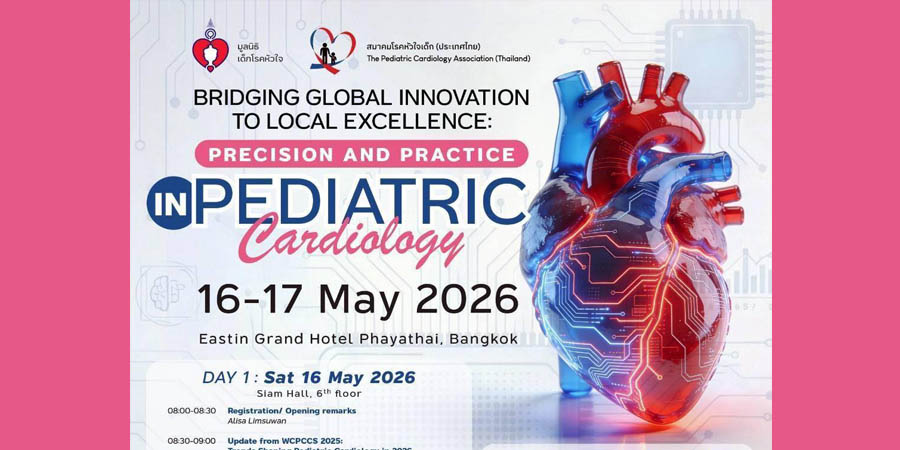 สมาคมโรคหัวใจเด็ก (ประเทศไทย) จัดงานประชุมประชุมสมาคมโรคหัวใจเด็ก (ประเทศไทย) ( Annual meeting PCAT 2026) ในหัวข้อ  “ Bridging Global Innovation to Local Excellence: Precision and Practice in Pediatric Cardiology ” วันที่ 16–17 พฤษภาคม 2569 ณ โรงแรมอีสติน แกรนด์ พญาไท กรุงเทพฯ
