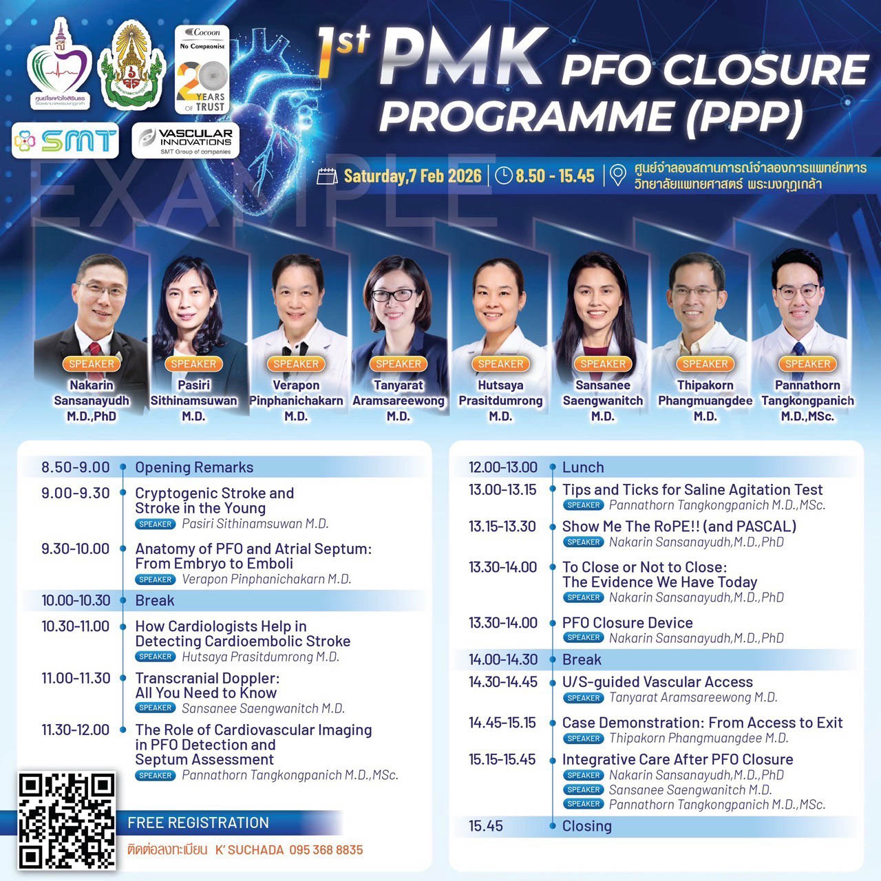 ศูนย์โรคหัวใจสิรินธร โรงพยาบาลพระมงกุฏเกล้า โดยแผนกโรคหัวใจและหลอดเลือด ร่วมกับแผนกประสาทวิทยา จัดการประชุมวิชาการ 1st PMK PFO Closure Program (PPP) ในวันเสาร์ที่ 7 กุมภาพันธ์ 2569 ณ ศูนย์ จำลองสถานการณ์จำลองการแพทย์ทหาร วิทยาลัยแพทยศาสตร์พระมงกุฎเกล้า