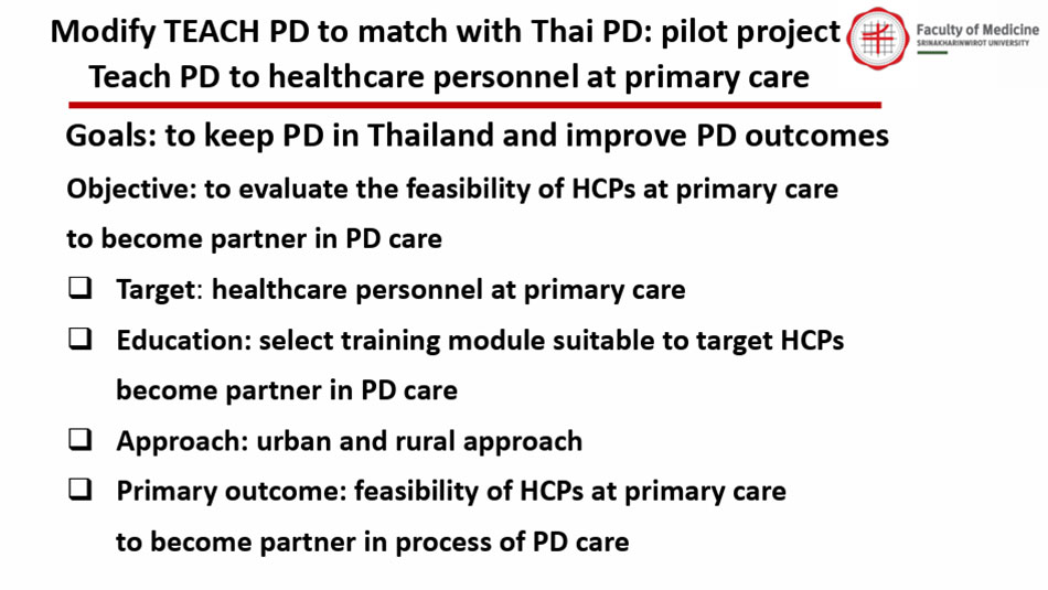 วัตถุประสงค์หลักของงานวิจัย TEACH PD Trial คือ เพื่อประเมินผลการอบรมความรู้และทักษะ