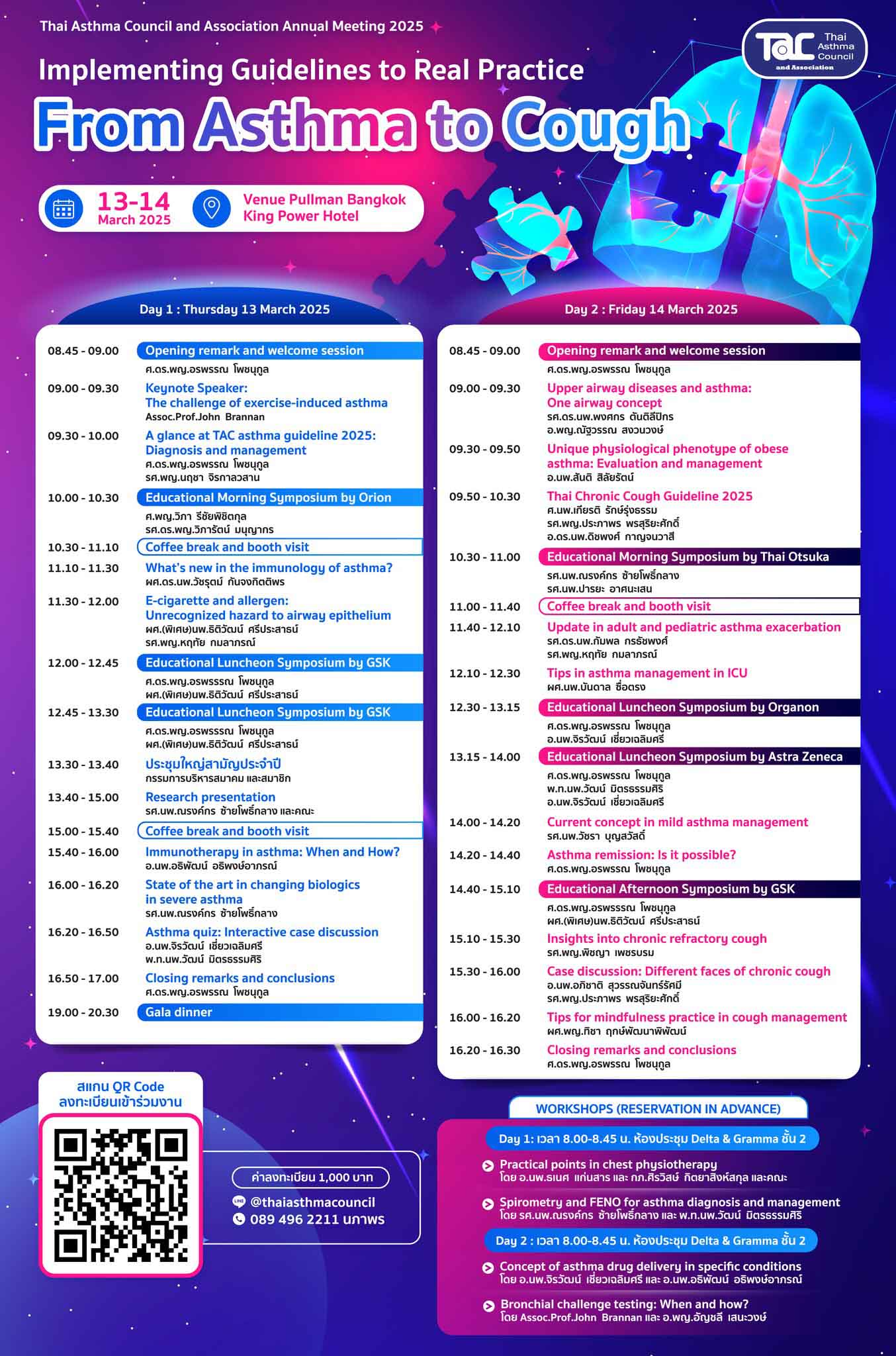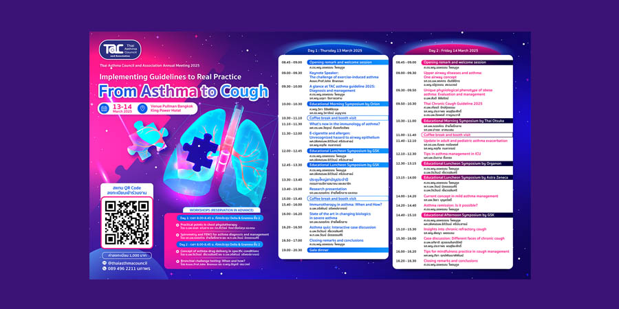 สมาคมสภาองค์กรโรคหืดแห่งประเทศไทย จัดงานประชุมใหญ่ประจำปี 2568 หัวข้อ “From Asthma to Cough : Implementing Guidelines to Real Practice” ในวันที่ 13-14 มีนาคม 2568 ณ โรงแรม Venue Pullman Bangkok King Power