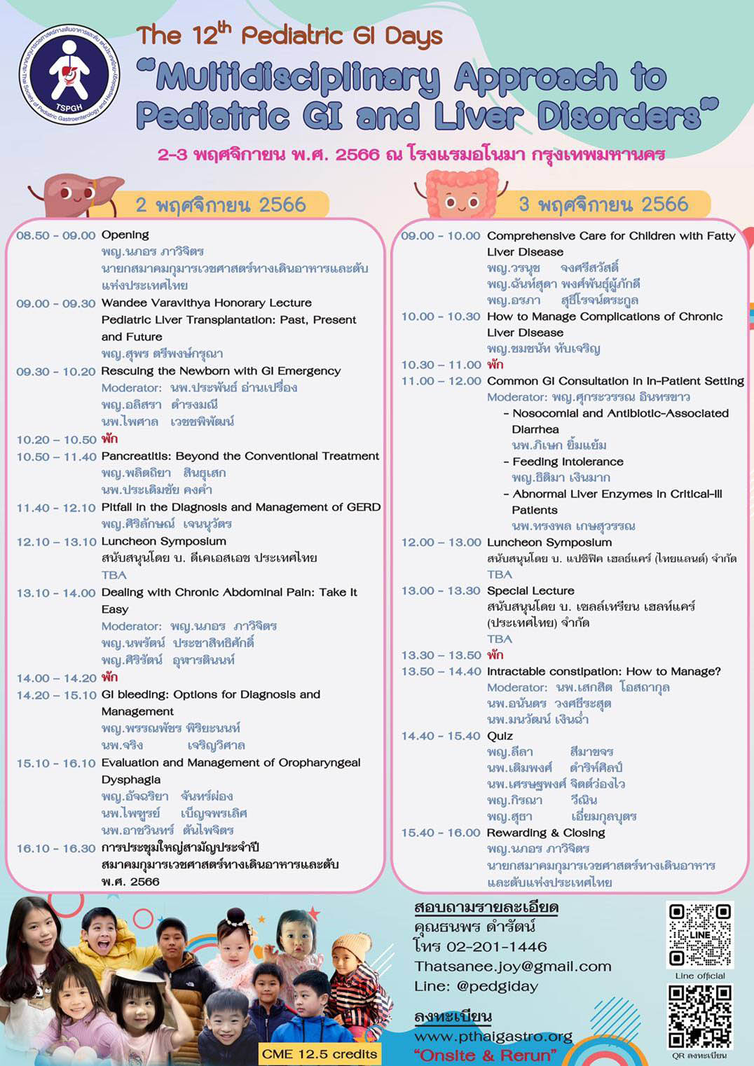 สมาคมกุมารเวชศาสตร์ทางเดินอาหารและตับแห่งประเทศไทย จัดการประชุมวิชาการ The 12th Pediatric GI Days “Multidisciplinary Approach to Pediatric GI and Liver Disorders” วันที่ 2 – 3 พฤศจิกายน 2566 ณ โรงแรมอโนมา กรุงเทพฯ