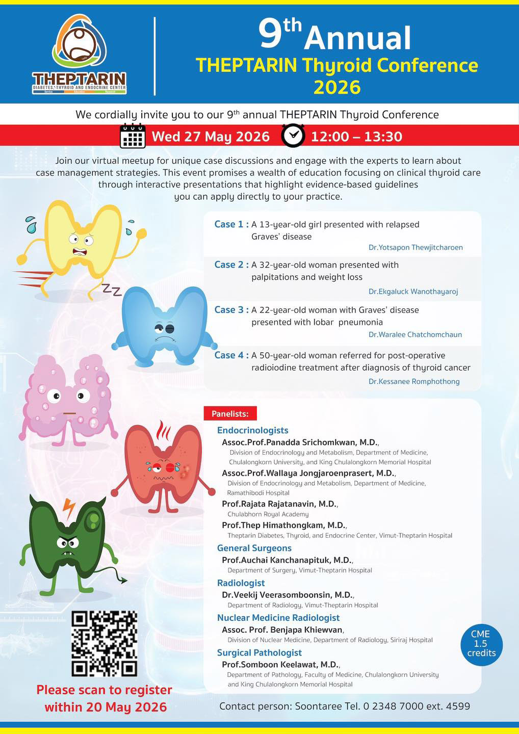 โรงพยาบาลเทพธารินทร์ จัดการประชุมวิชาการ 9th Annual Theptarin Thyroid Conferece 2026 วันที่ 27 พฤษภาคม 2569 เวลา 12.00-13.30 น. รูปแบบ Virtual Meeting