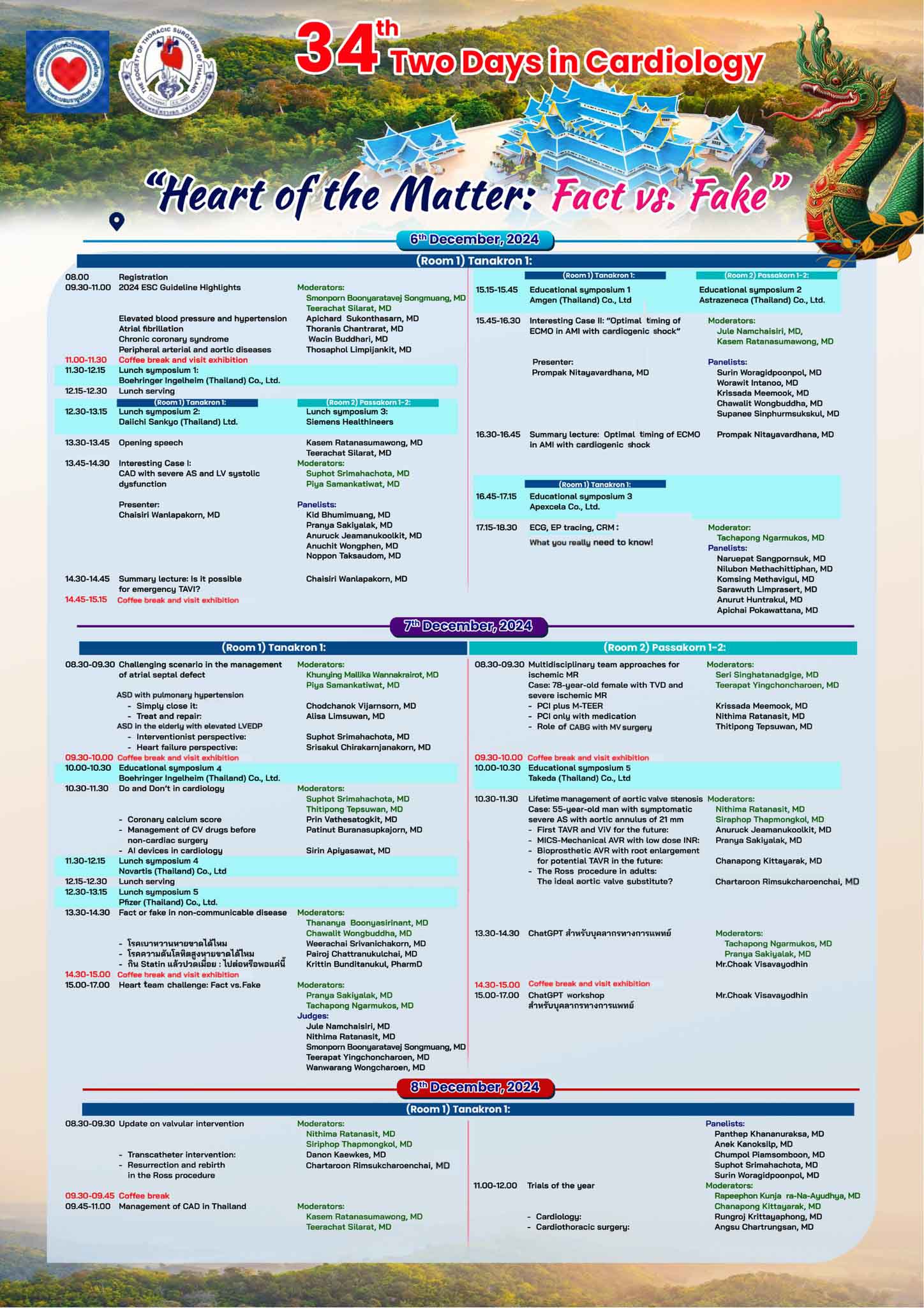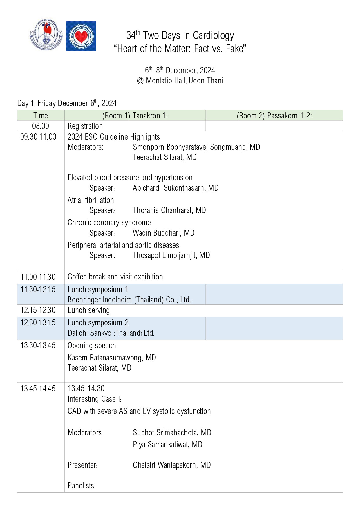 สมาคมแพทย์โรคหัวใจแห่งประเทศไทย ในพระบรมราชูปถัมภ์ ร่วมกับสมาคมศัลยแพทย์ทรวงอกแห่งประเทศไทย จัดการประชุมวิชาการ 34th Two Days in Cardiology Theme “Heart of the Matter: Fact vs. Fake” ระหว่างวันที่ 6-8 ธันวาคม 2567 ณ ศูนย์ประชุมนานาชาติ มลฑาทิพย์ ฮอลล์ จ.อุดรธานี