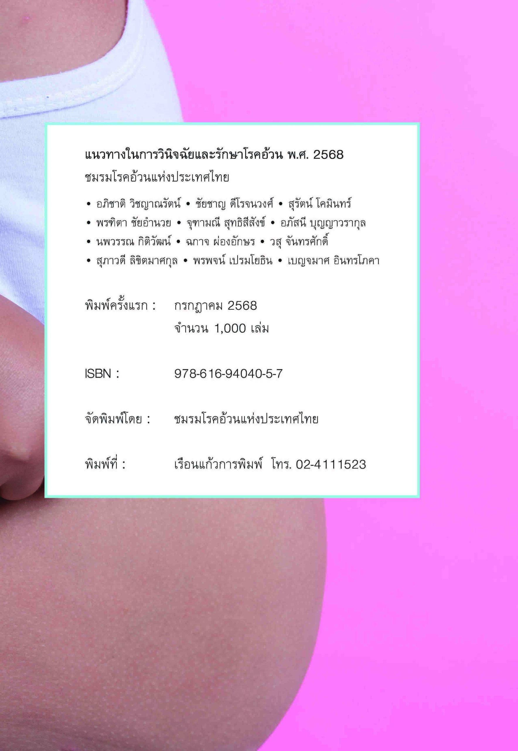 หนังสือแนวทางในการวินิจฉัยและรักษาโรคอ้วน พ.ศ.2568 จัดพิมพ์โดย ชมรมโรคอ้วนแห่งประเทศไทย