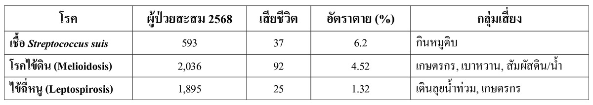 โรคประจำถิ่นในไทยช่วงฤดูฝน (ข้อมูล ณ 29 กรกฎาคม 2568)