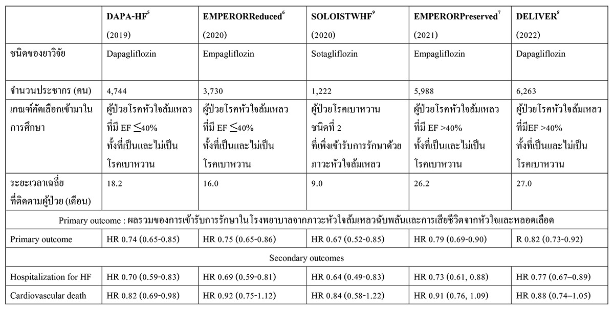ตารางที่ 1 การศึกษาของยากลุ่ม SGLT2 inhibitor ในผู้ป่วยหัวใจล้มเหลว