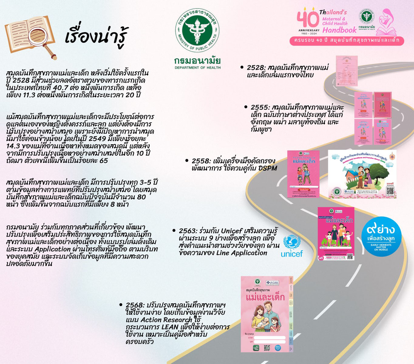 กรมอนามัย ร่วมกับทุกภาคส่วนที่เกี่ยวข้อง พัฒนาปรับปรุงเพื่อเสริมประสิทธิภาพของการใช้สมุดบันทึกสุขภาพแม่และเด็กอย่างต่อเนื่อง