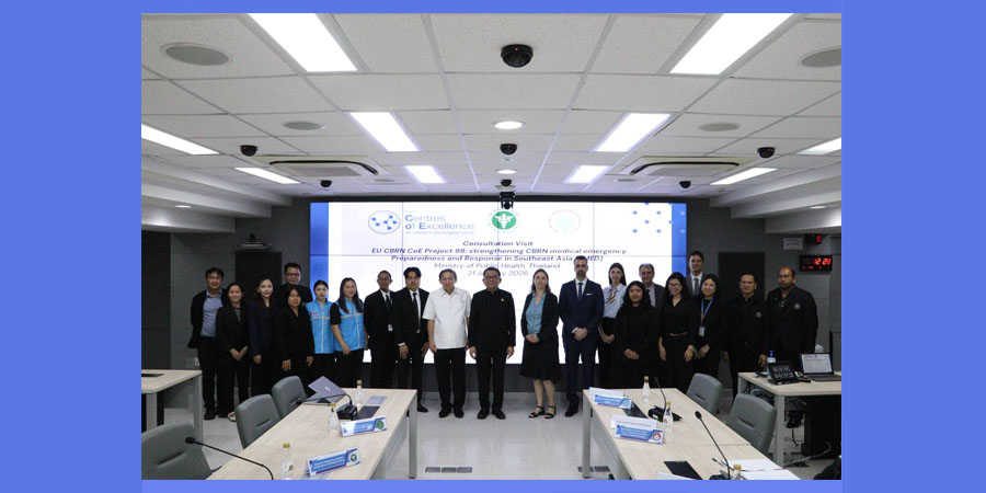 กระทรวงสาธารณสุข (สธ.) เปิดกิจกรรมศึกษาดูงานภายใต้โครงการ EU CBRN CoE Project 98 (P98) ต้อนรับผู้เชี่ยวชาญจากสหภาพยุโรป ร่วมแลกเปลี่ยนองค์ความรู้และยกระดับความพร้อมด้านการแพทย์และสาธารณสุขในการรับมือภัยคุกคามทางเคมี ชีวภาพ รังสี และนิวเคลียร์ (CBRN) พัฒนาหลักสูตรฝึกอบรมแบบ Train-the-Trainer สำหรับบุคลากรทางการแพทย์ในภูมิภาคเอเชียตะวันออกเฉียงใต้