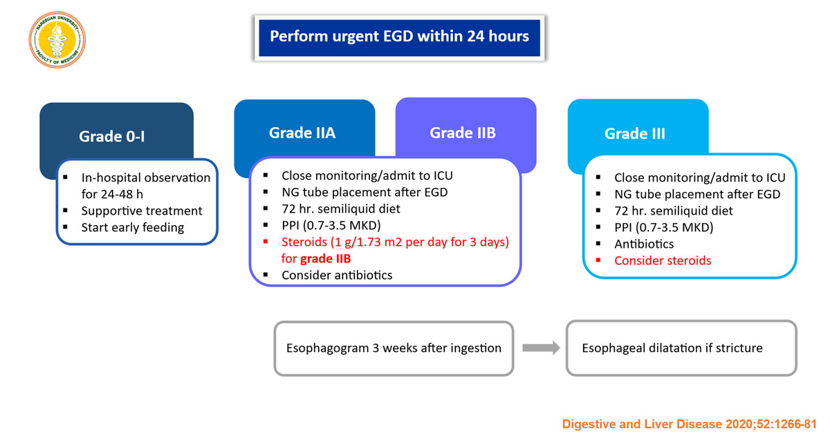 - Gordon ES, Barfield E, Gold BD. Early management of acute caustic ingestion in pediatrics. J Pediatr Gastroenterol Nutr. 2025;80(4):537-48.
