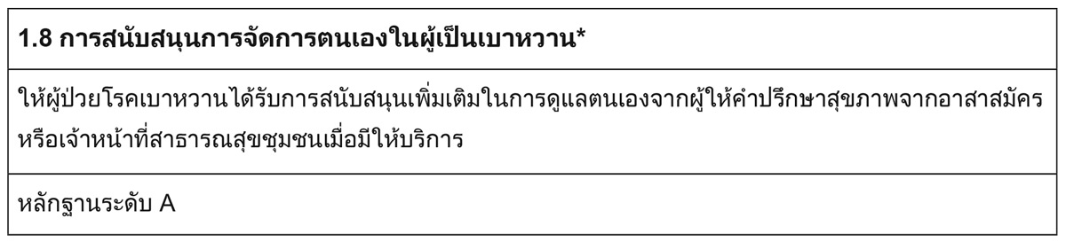 * สำหรับคำแนะนำ ปี 2026 ADA (37) ได้เพิ่มเติมในรายละเอียดถึงการใช้ Digital tools หรือ โคช อาจจะพิจารณาตามความเหมาะสม (หลักฐานระดับ B)