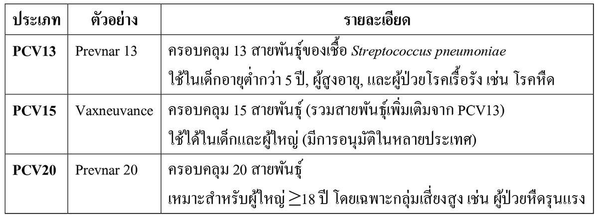 - วัคซีนชนิดคอนจูเกต (Pneumococcal Conjugate Vaccine: PCV)
