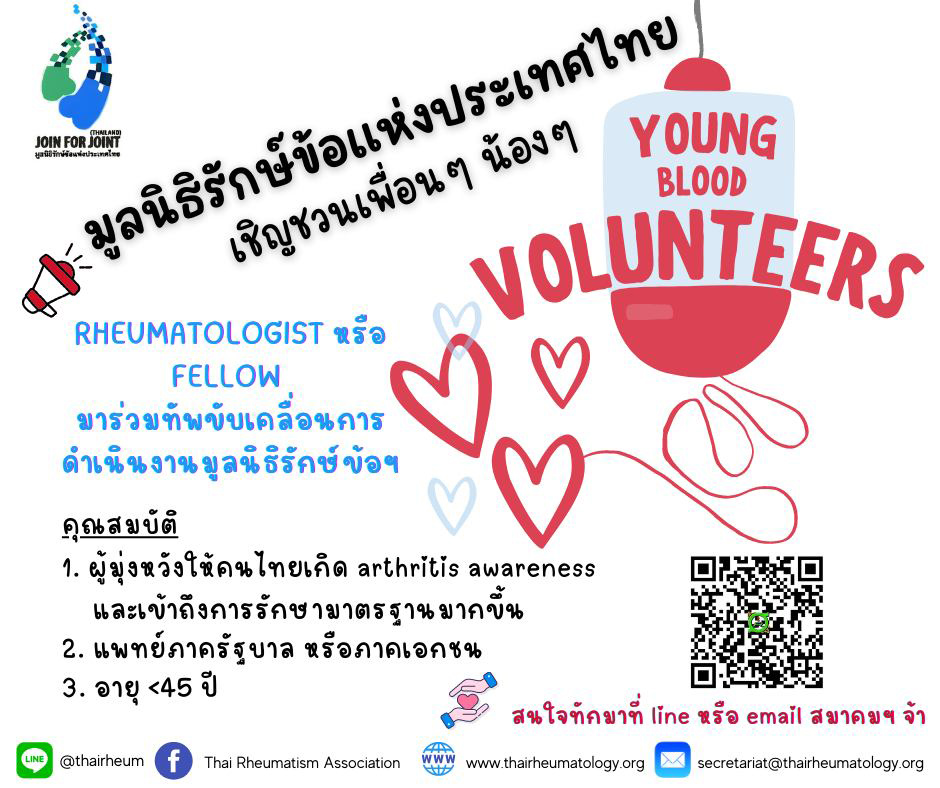 มูลนิธิรักษ์ข้อแห่งประเทศไทย เปิดรับสมัคร Young Blood Volunteers